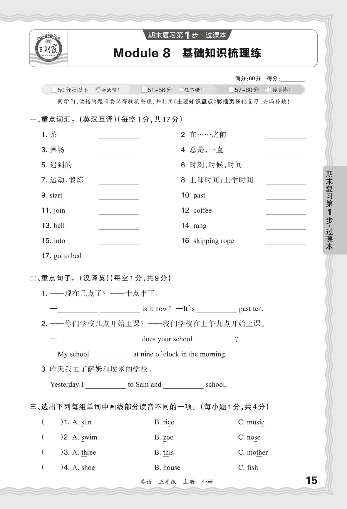 2023秋上册五年级英语外研版 期末过课本·Moudle 8 基础知识梳理练
