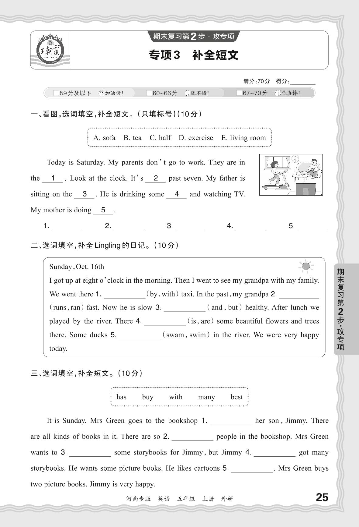 五年级英语外研版(三起始)上册专项卷