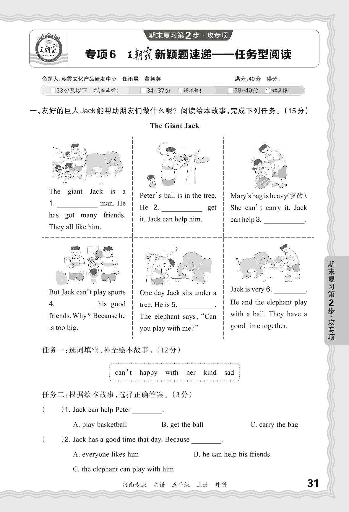 2023秋上册五年级英语外研版 期末专项卷·王朝霞新颖题速递——任务型阅读【6】