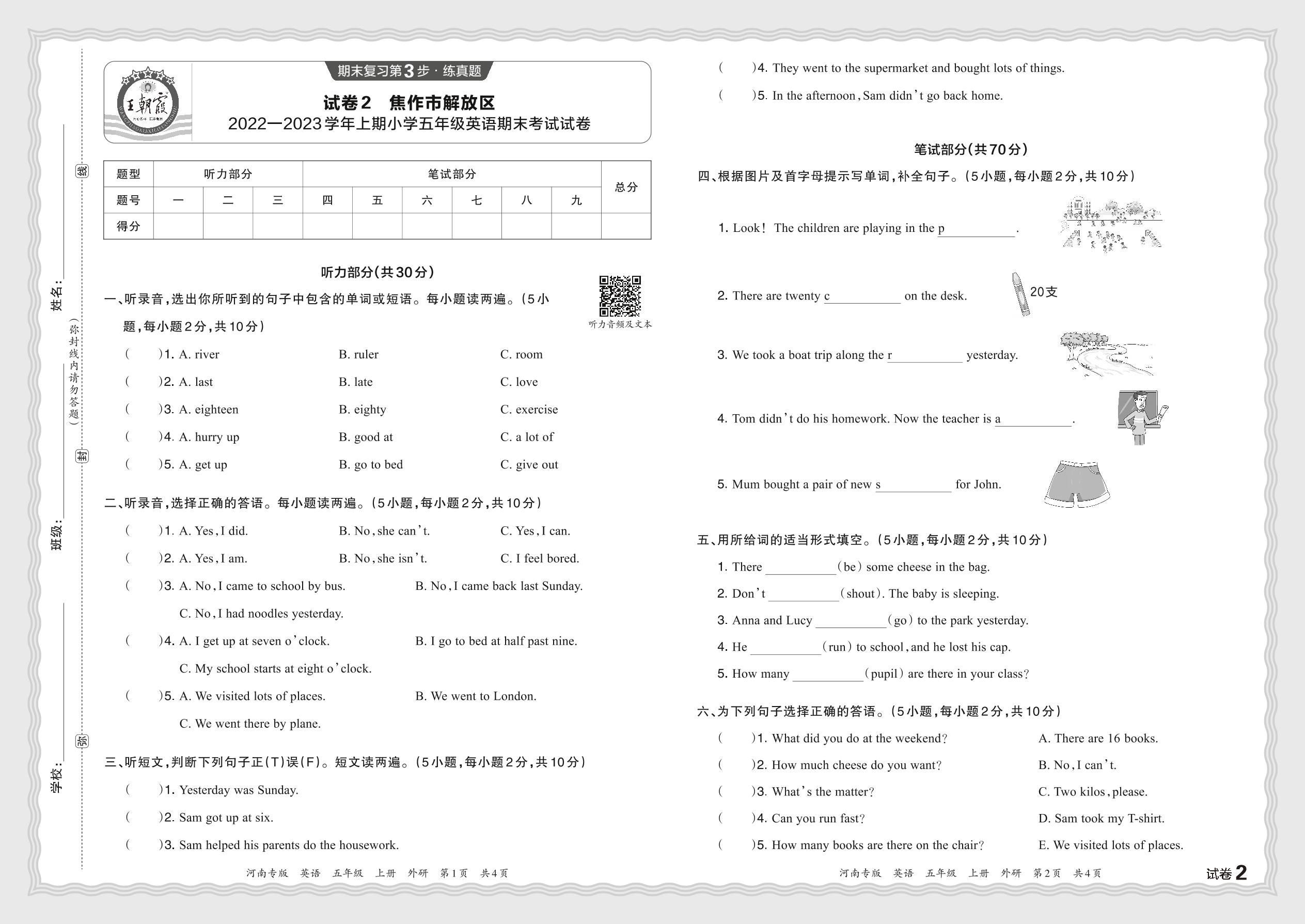 河南省焦作市解放区2022—2023学年上期小学五年级英语期末考试试卷(外研版)【2】