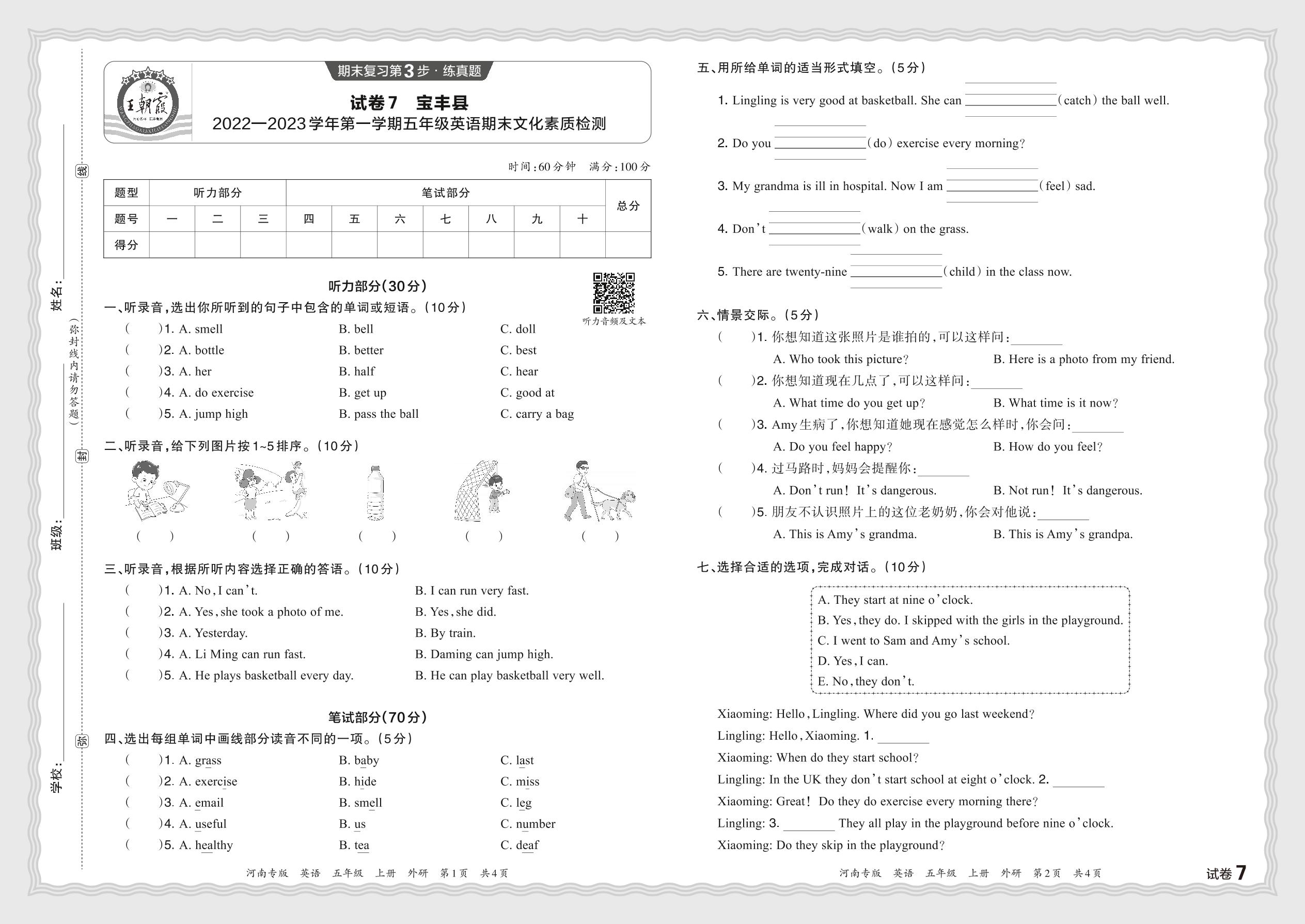 五年级英语外研版(三起始)上册期末卷