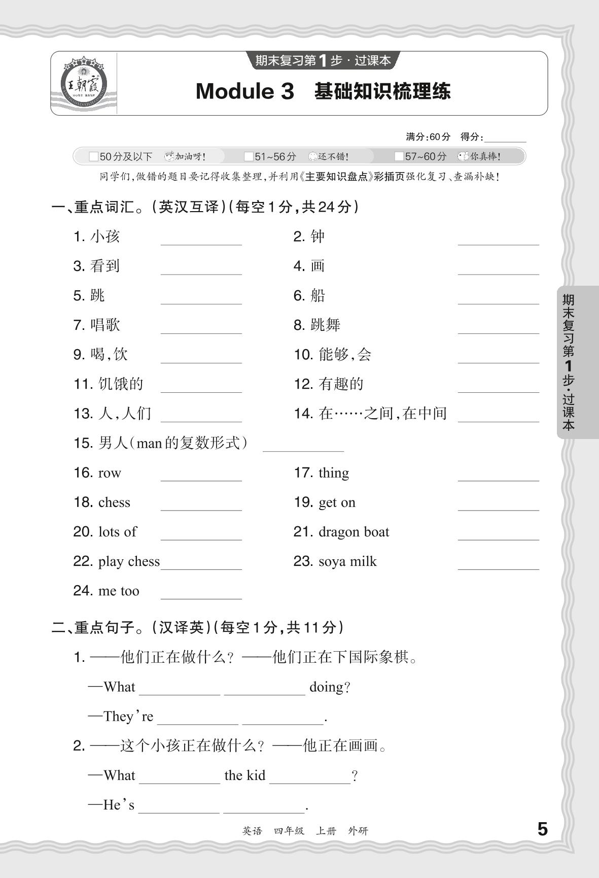2023秋上册四年级英语外研版 期末过课本·Moudle 3 基础知识梳理练
