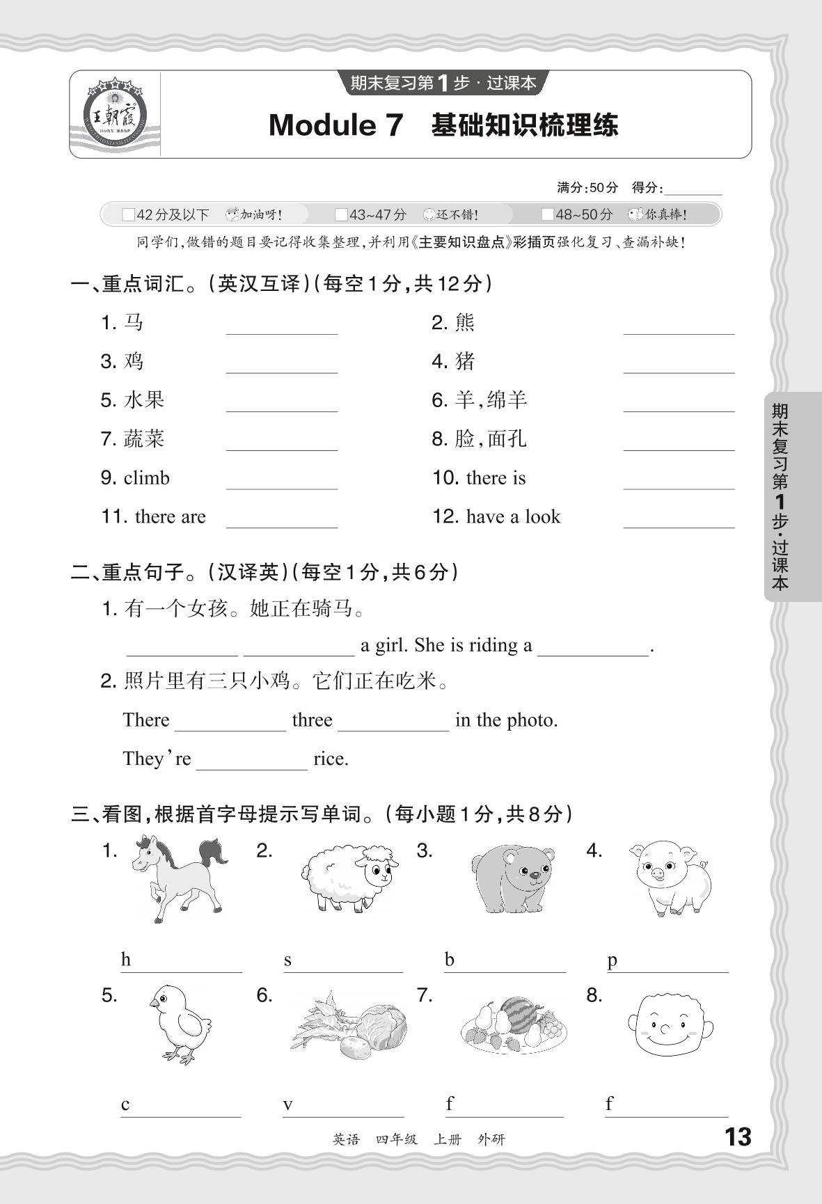 2023秋上册四年级英语外研版 期末过课本·Moudle 7 基础知识梳理练