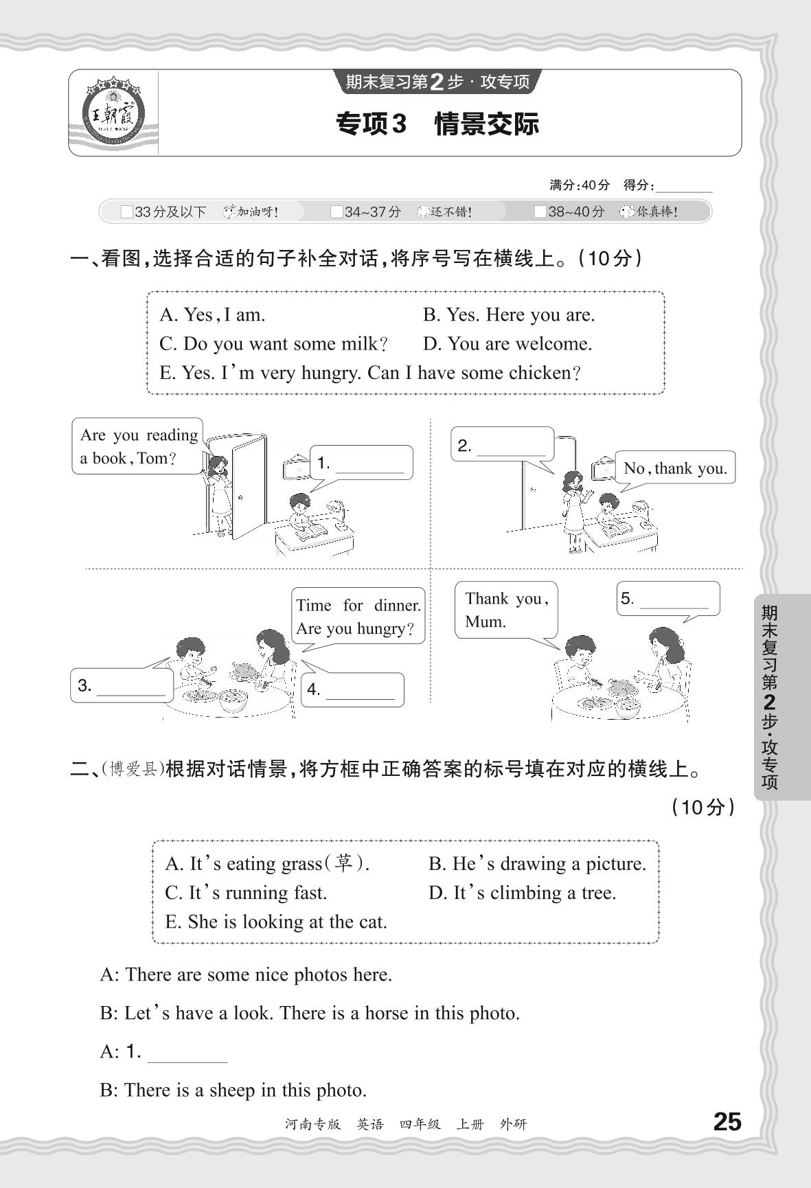 2023秋上册四年级英语外研版 期末专项卷·情景交际【3】