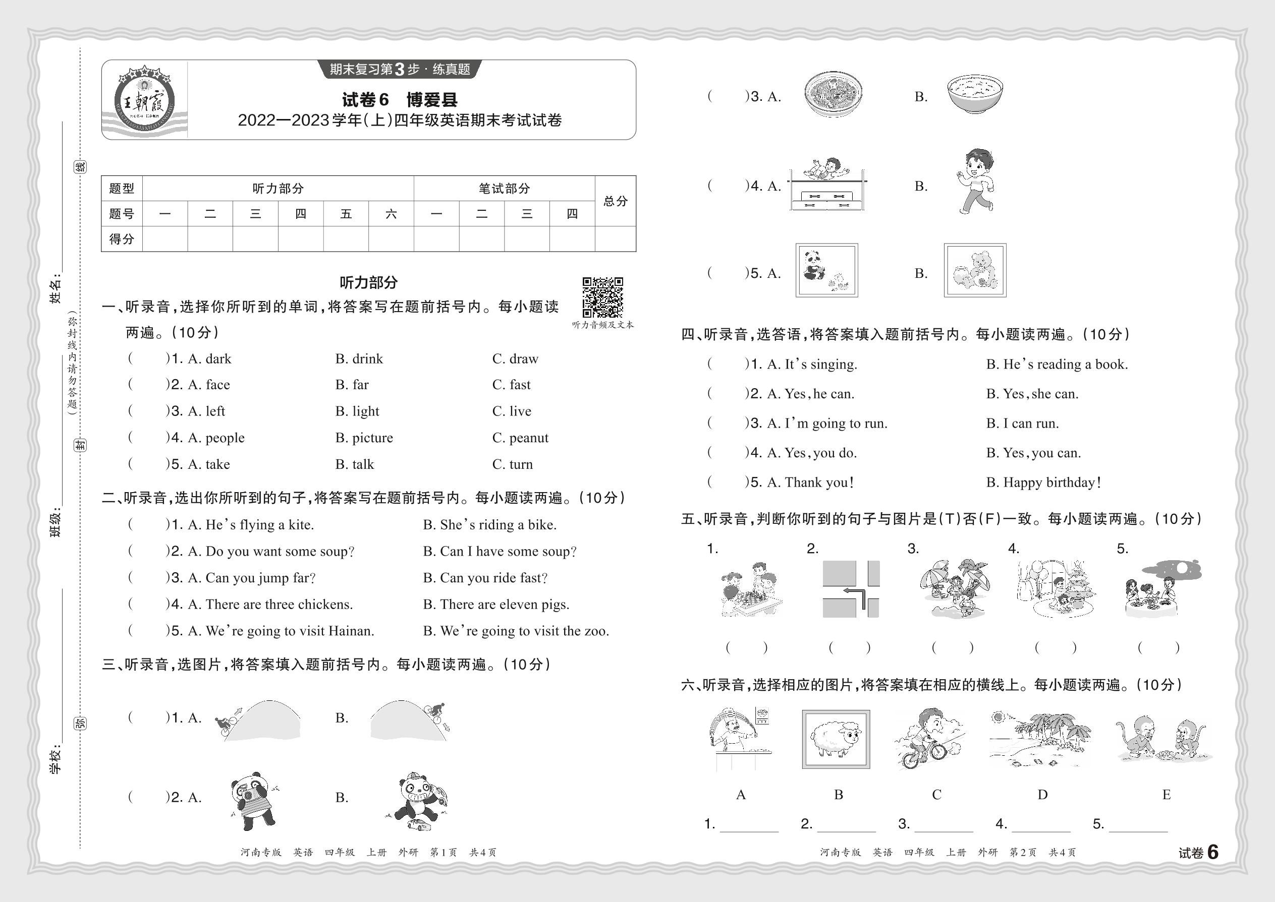 河南省焦作市博爱县2022—2023学年(上)四年级英语期末考试试卷(外研版)【6】