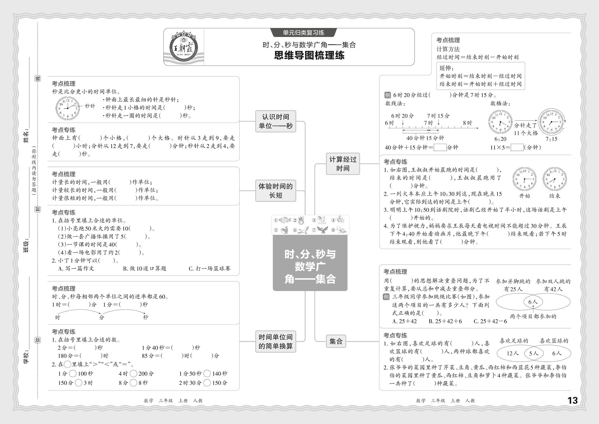 2023秋上册三年级数学人教版 期末过课本·单元归类复习练——时、分、秒与数学广角——集合【6】