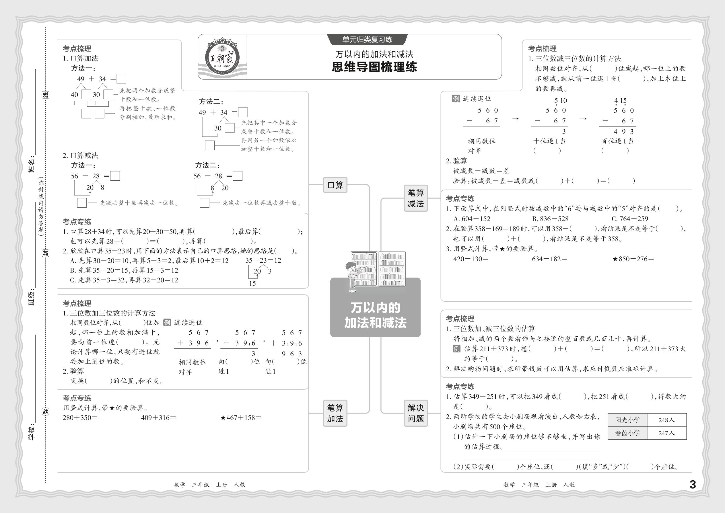 2023秋上册三年级数学人教版 期末过课本·单元归类复习练——万以内的加法和减法【1】