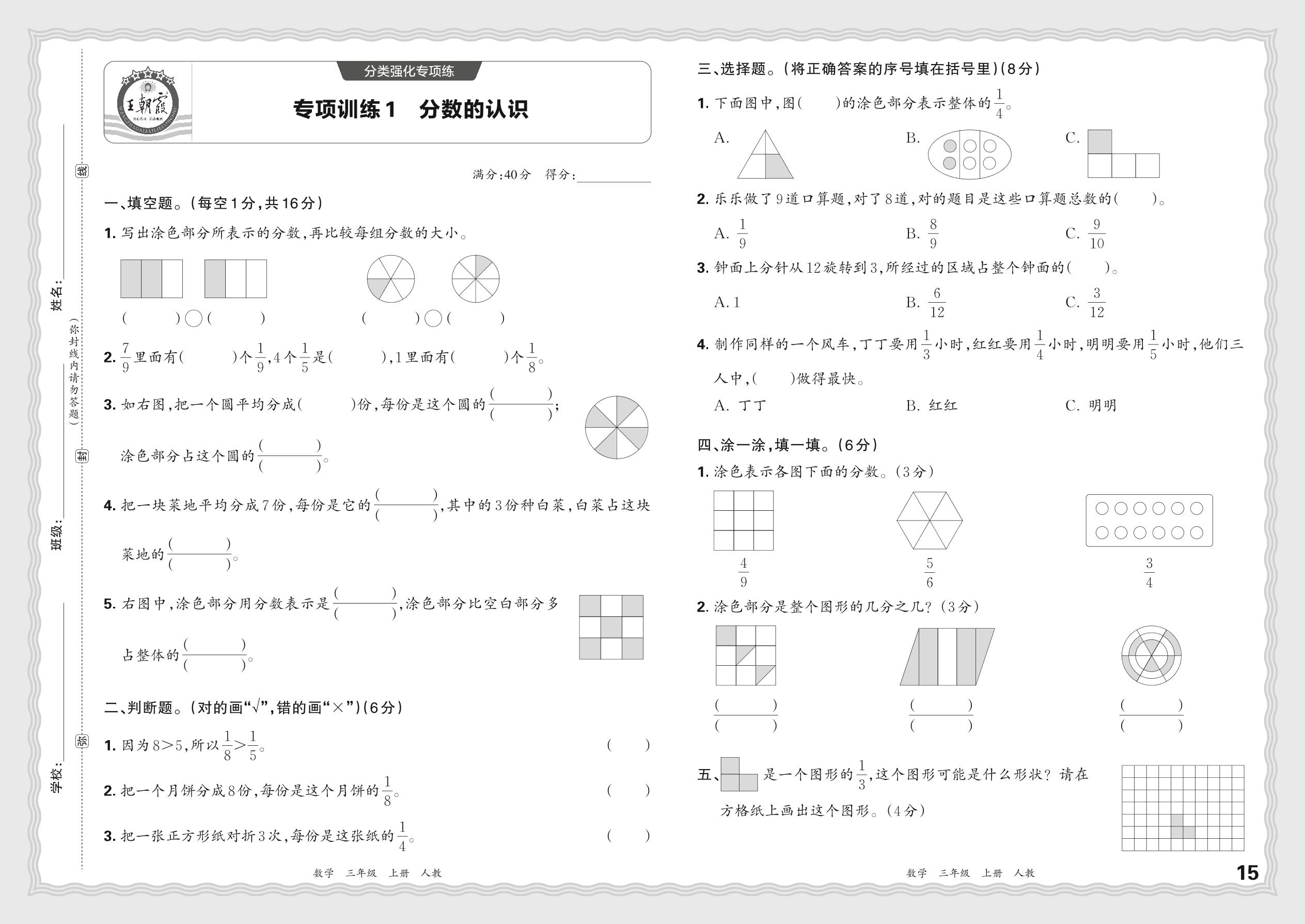 2023秋上册三年级数学人教版 期末专项·分数的认识【1】