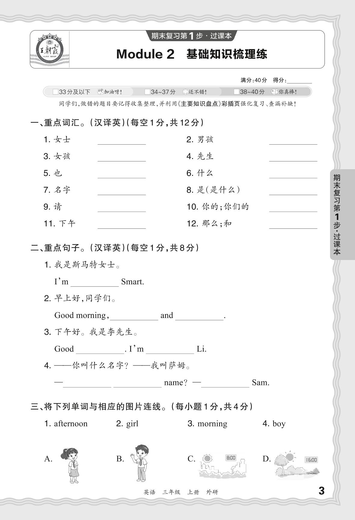 2023秋上册三年级英语外研版 期末过课本·Moudle 2 基础知识梳理练