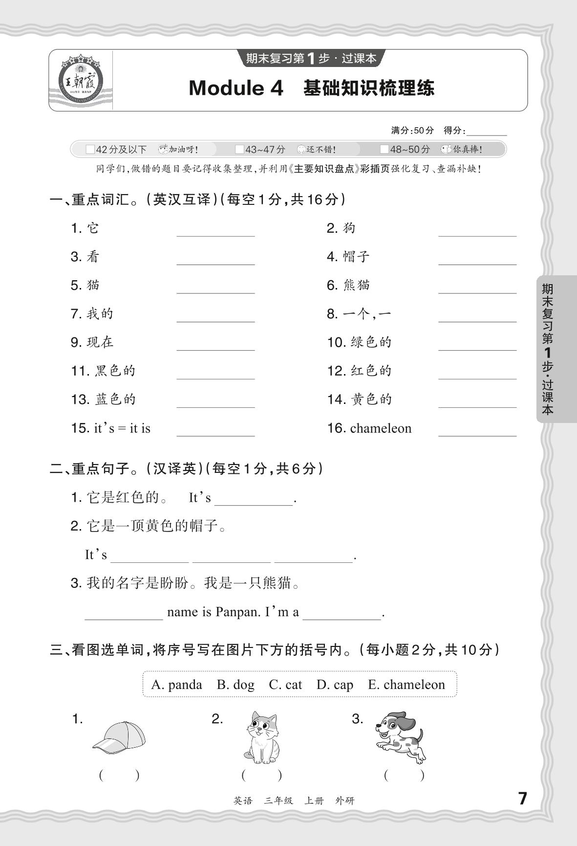 2023秋上册三年级英语外研版 期末过课本·Moudle 4 基础知识梳理练