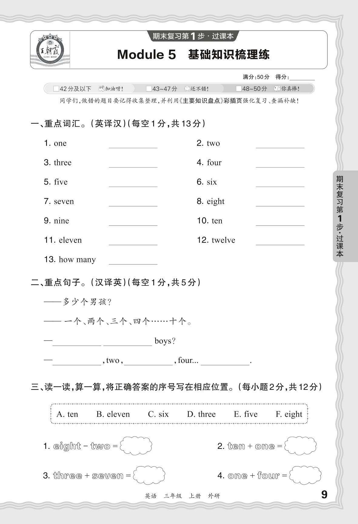 2023秋上册三年级英语外研版 期末过课本·Moudle 5 基础知识梳理练