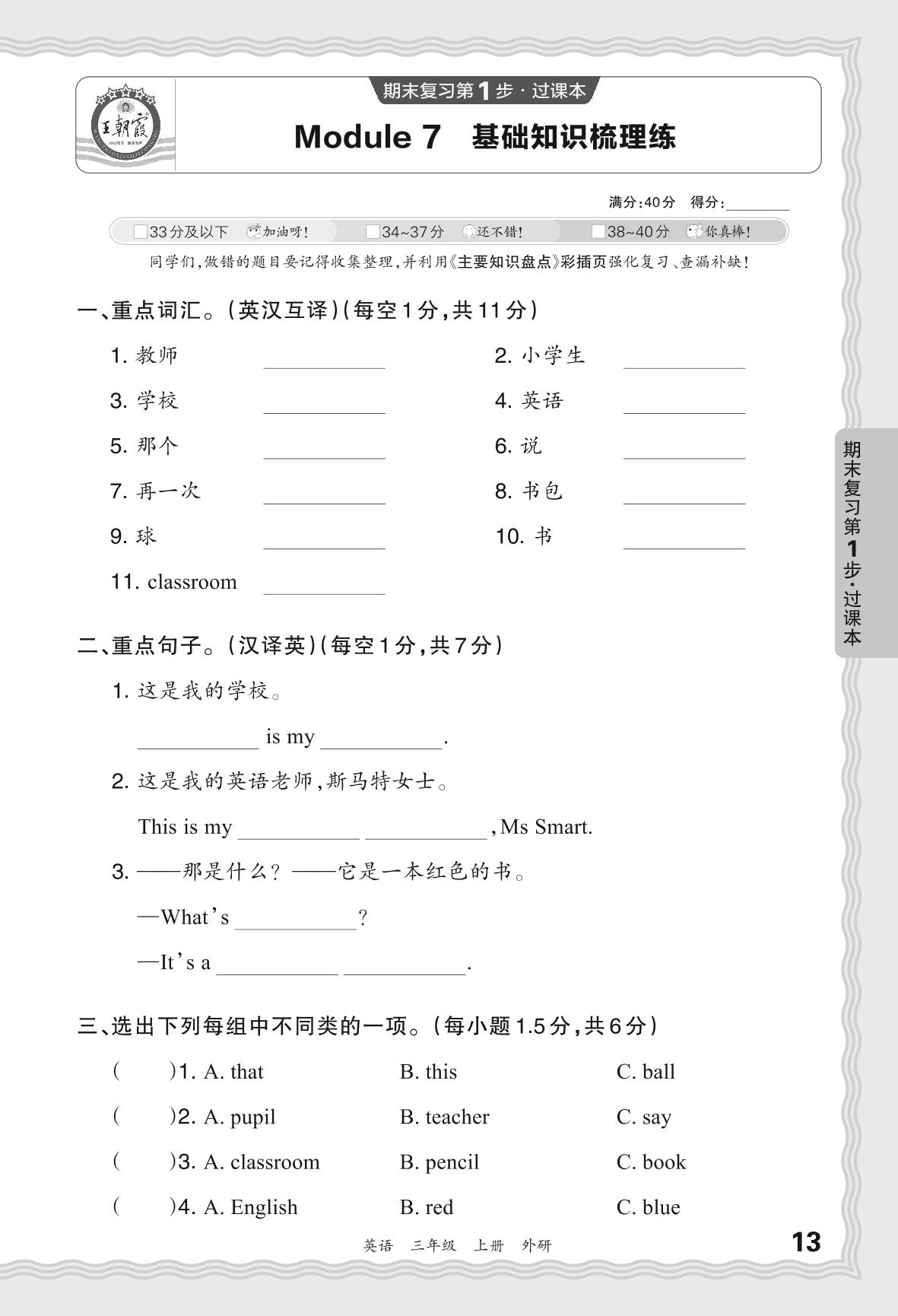 2023秋上册三年级英语外研版 期末过课本·Moudle 7 基础知识梳理练