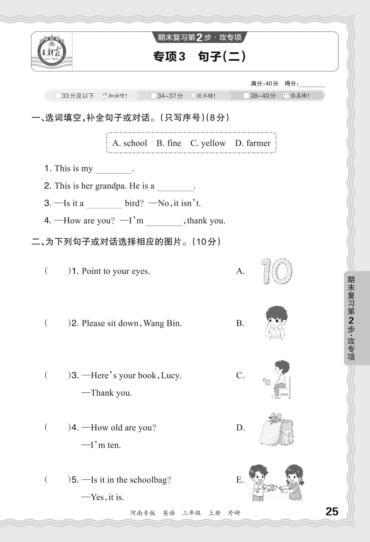 2023秋上册三年级英语外研版 期末专项卷·句子(二)【3】