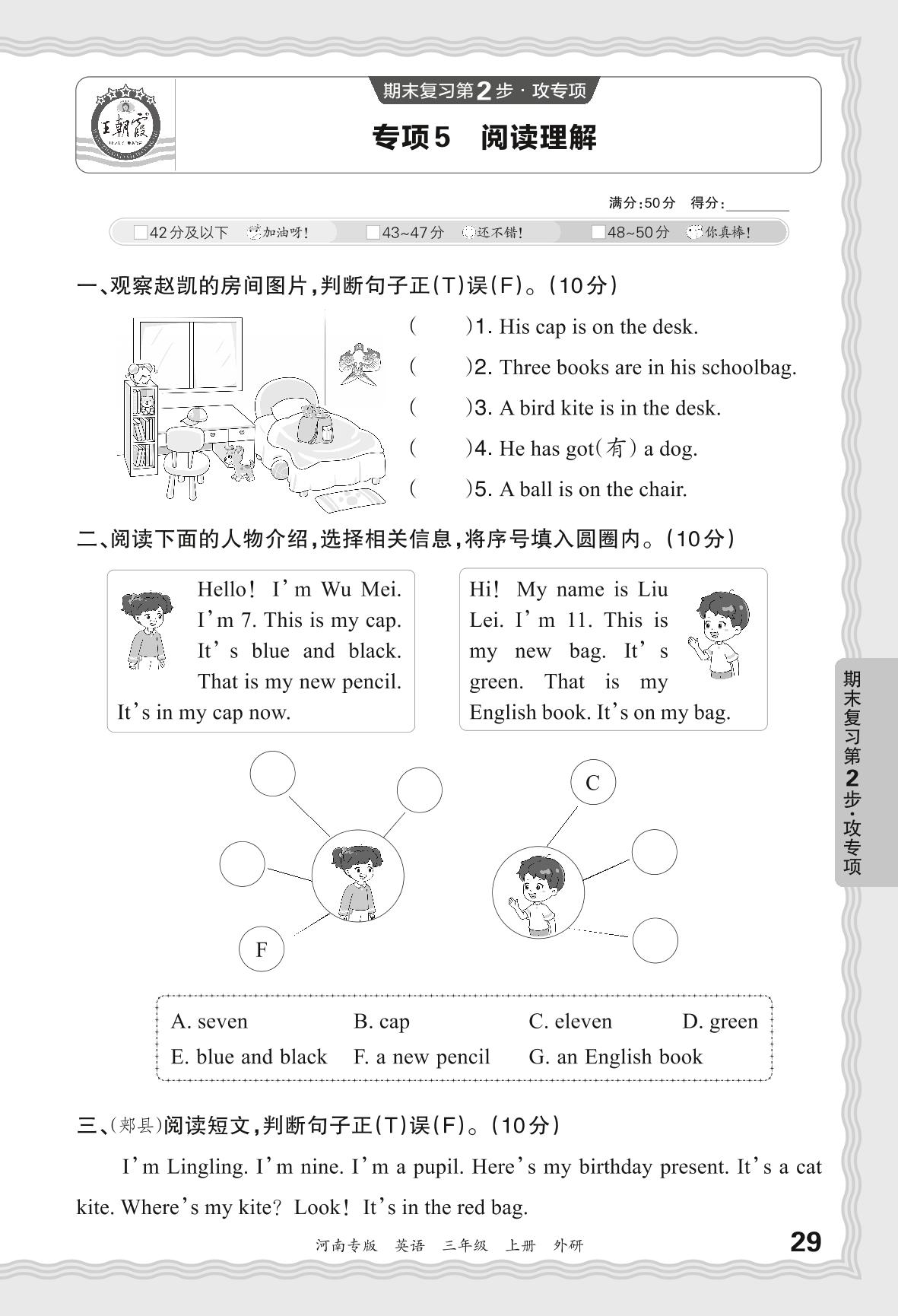 三年级英语外研版(三起始)上册专项卷
