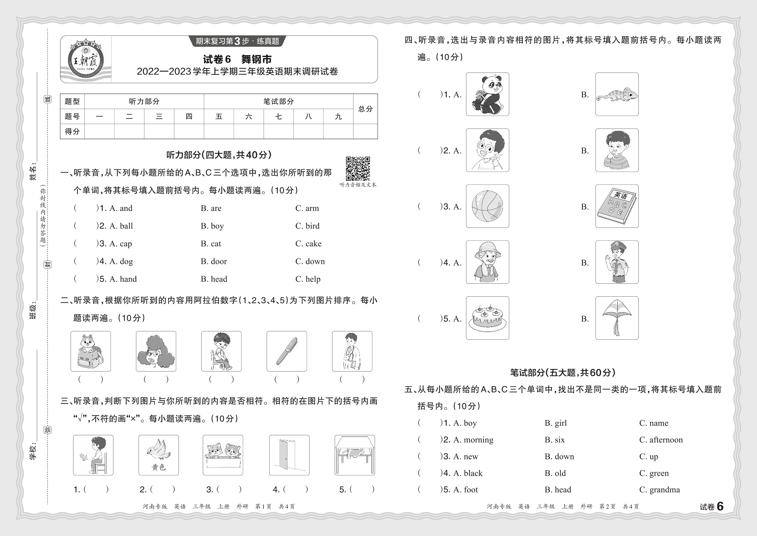 三年级英语外研版(三起始)上册期末卷