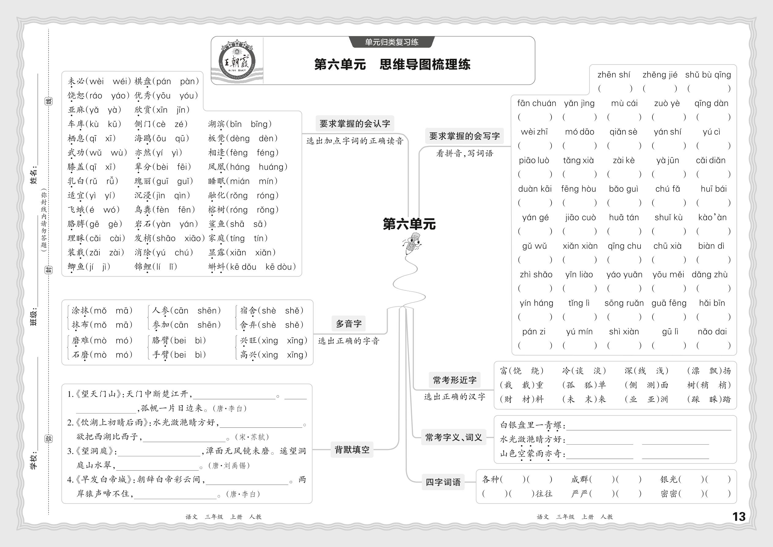 2023秋上册三年级语文人教版 期末过课本·单元归类复习练——第六单元