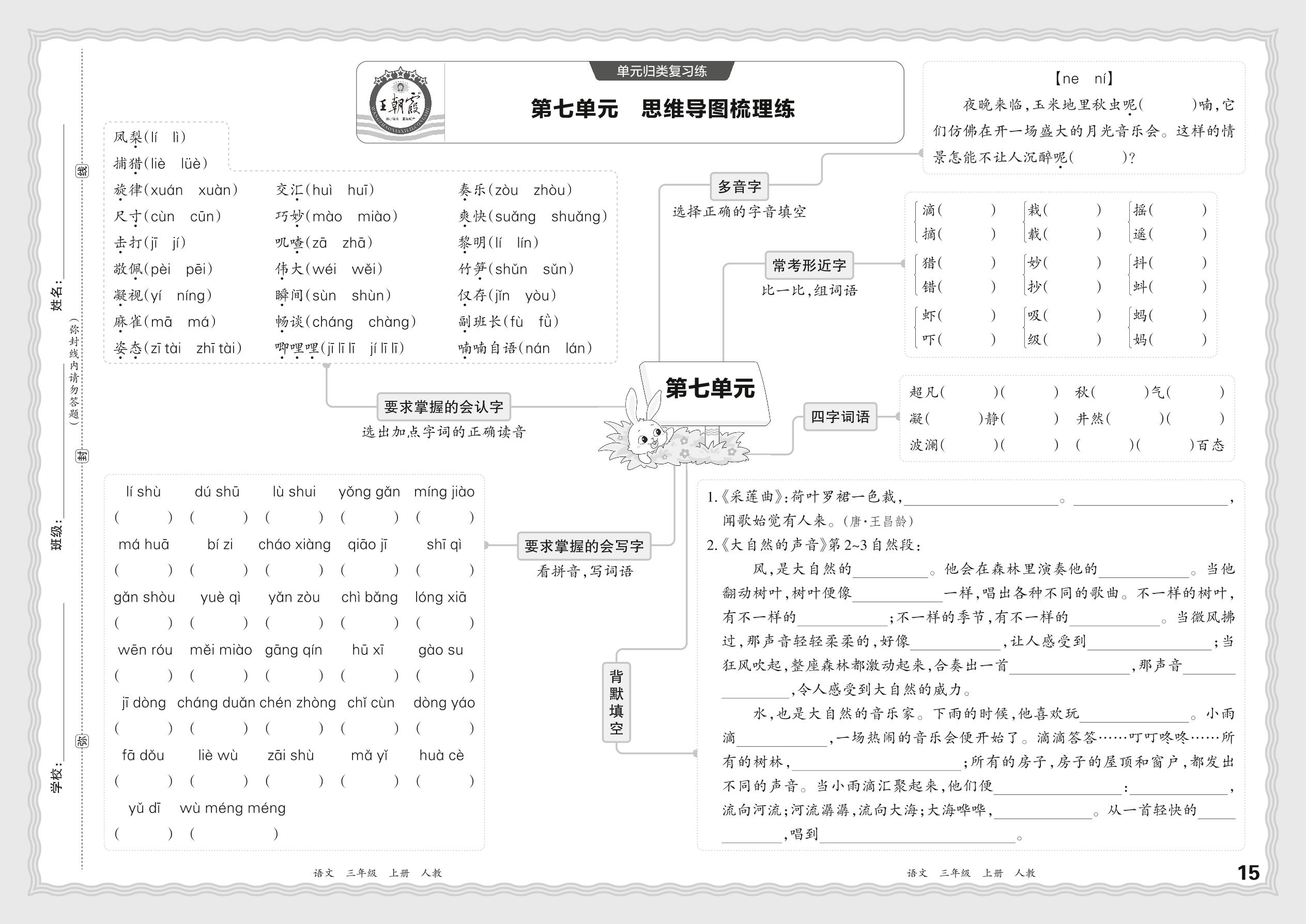 2023秋上册三年级语文人教版 期末过课本·单元归类复习练——第七单元