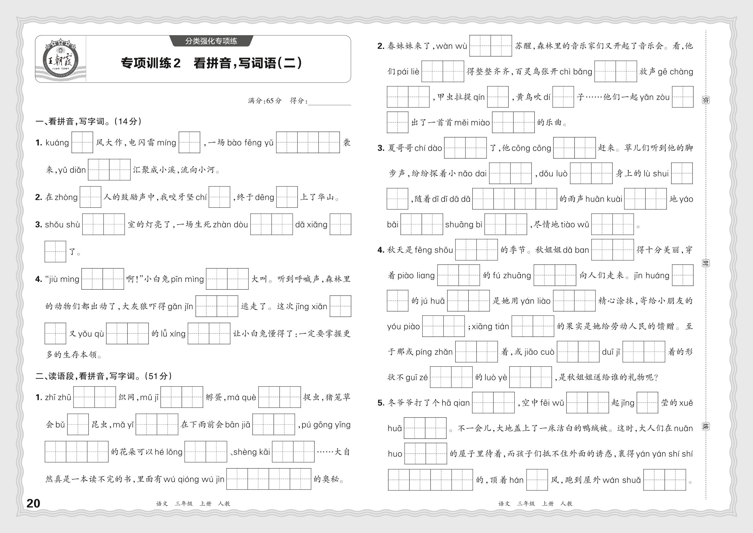 2023秋上册三年级语文人教版 期末专项·看拼音,写词语(二)【2】