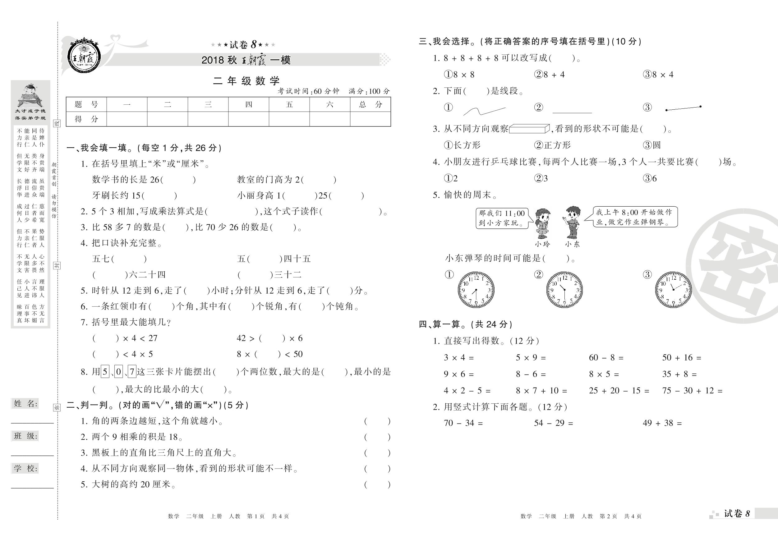 王朝霞期末模拟卷二年级上册数学(人教版)_R210803103626【8】