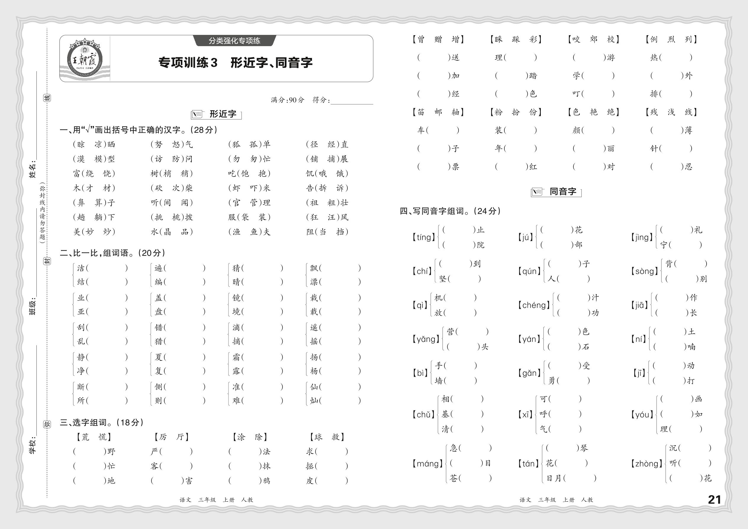 2023秋上册三年级语文人教版 期末专项·形近字、同音字【3】
