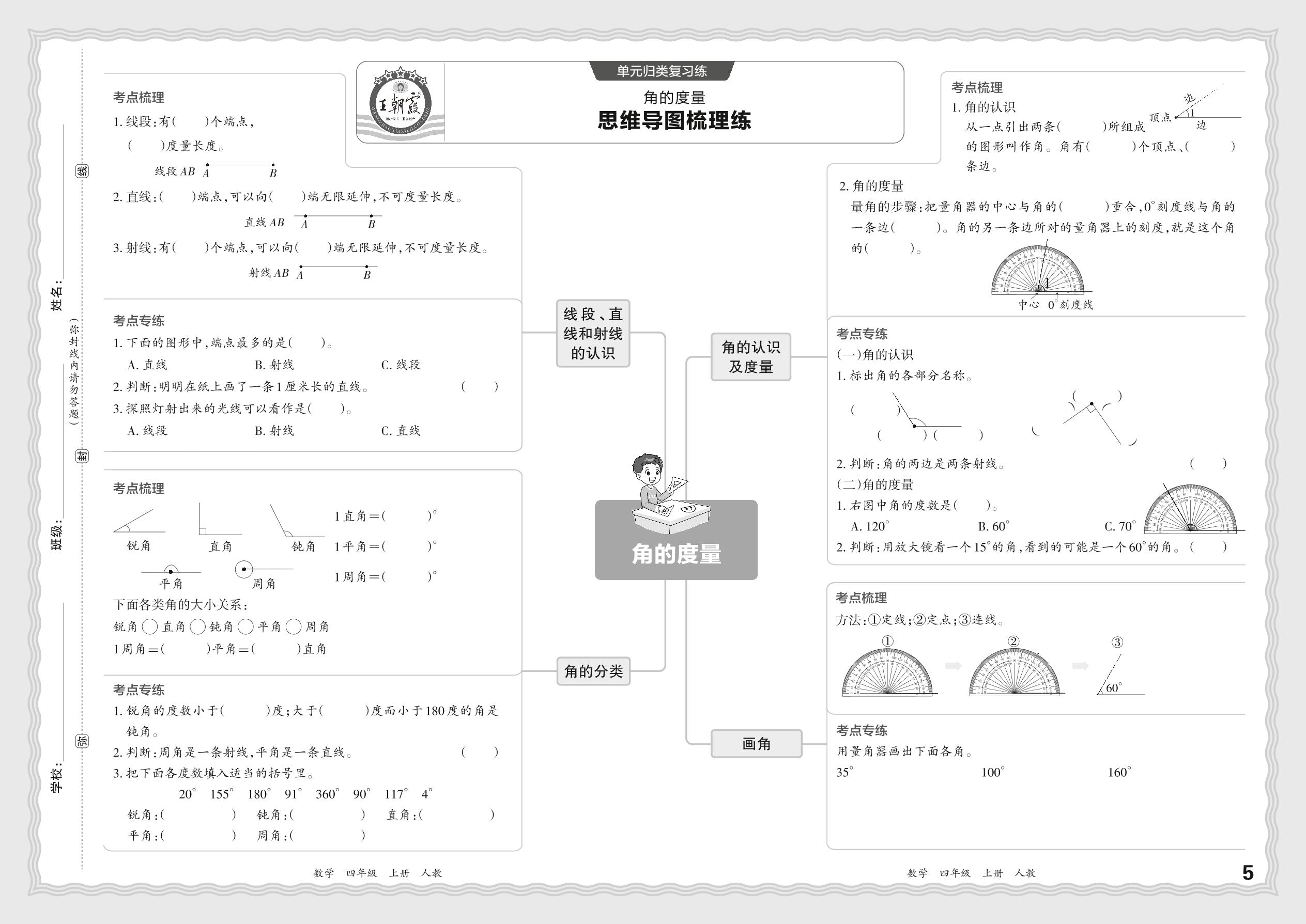2023秋上册四年级数学人教版 期末过课本·单元归类复习练——角的度量【2】