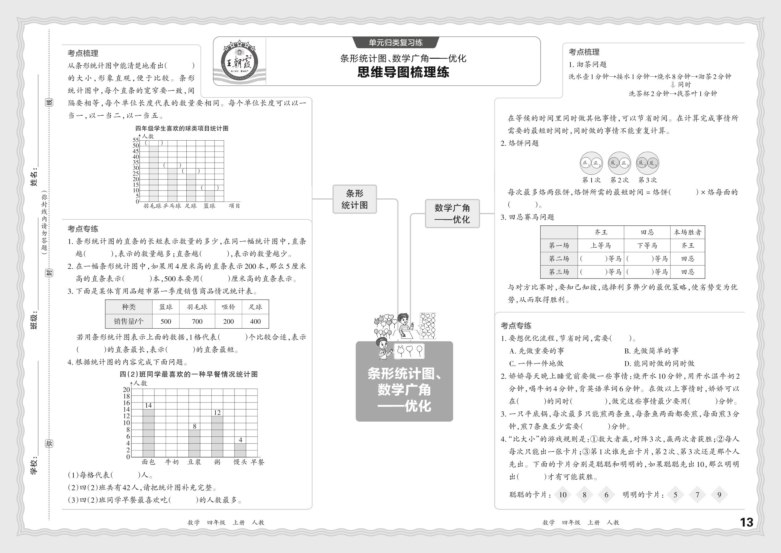 2023秋上册四年级数学人教版 期末过课本·单元归类复习练——条形统计图、数学广角——优化【6】