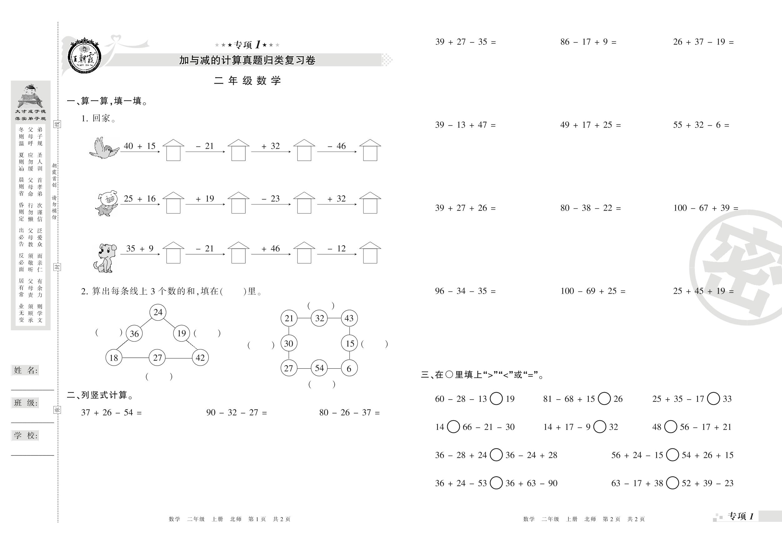 王朝霞期末专项卷——加与减的计算、加与减的实际应用真题归类复习卷二年级上册数学(北师版)_R210803103639【0】