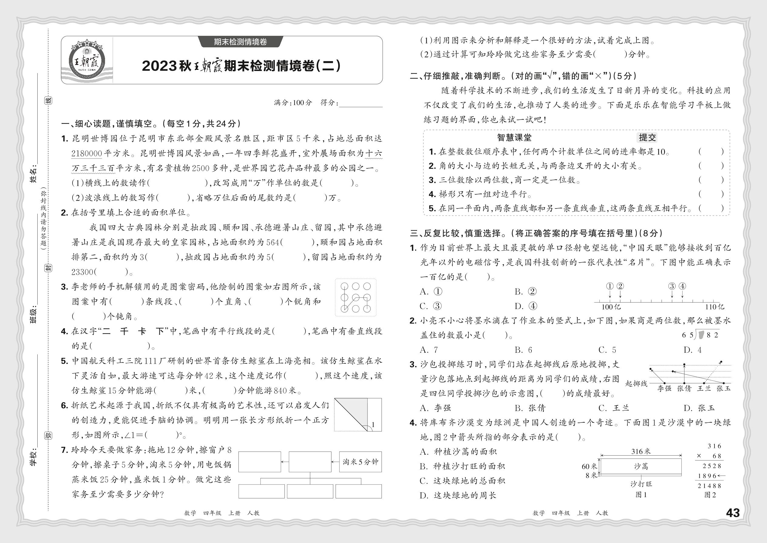 2023秋上册四年级数学人教版 王朝霞期末检测情境卷(二)