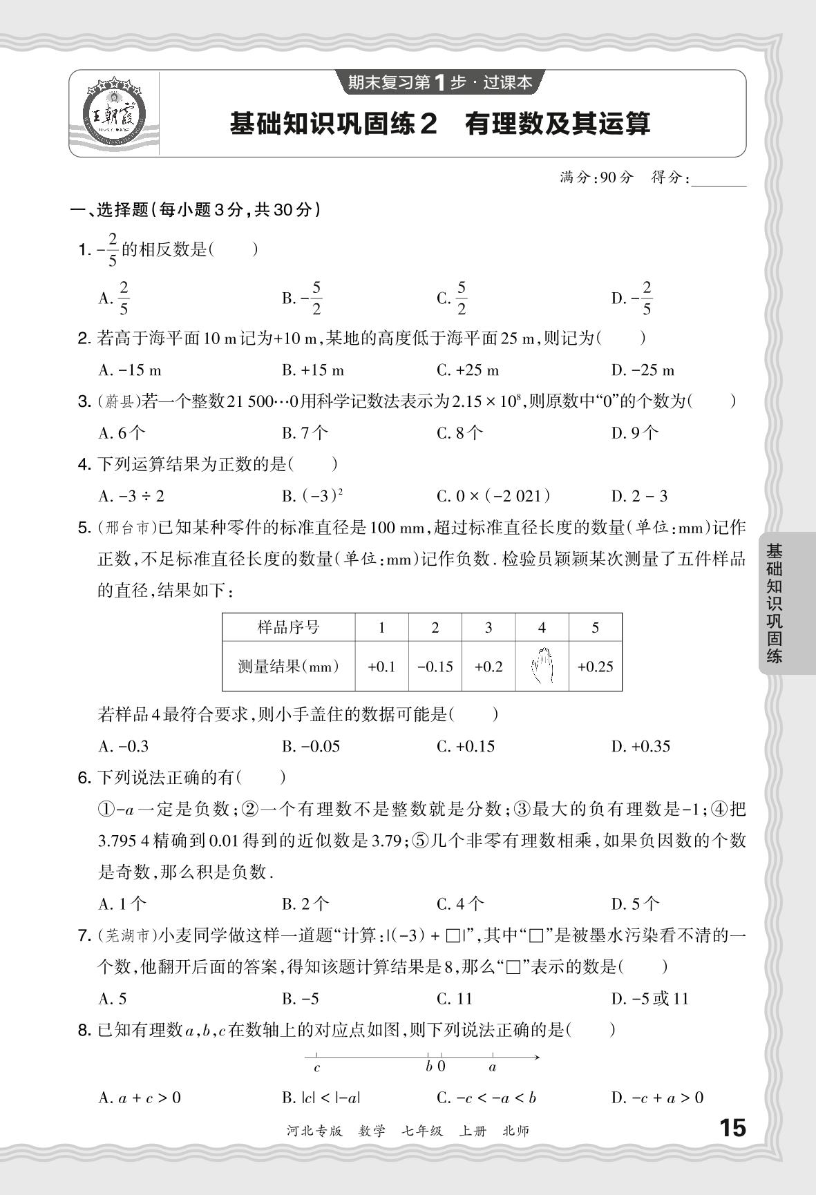 2023秋上册七年级数学北师版 期末过课本·基础知识巩固练 有理数及其运算【2】