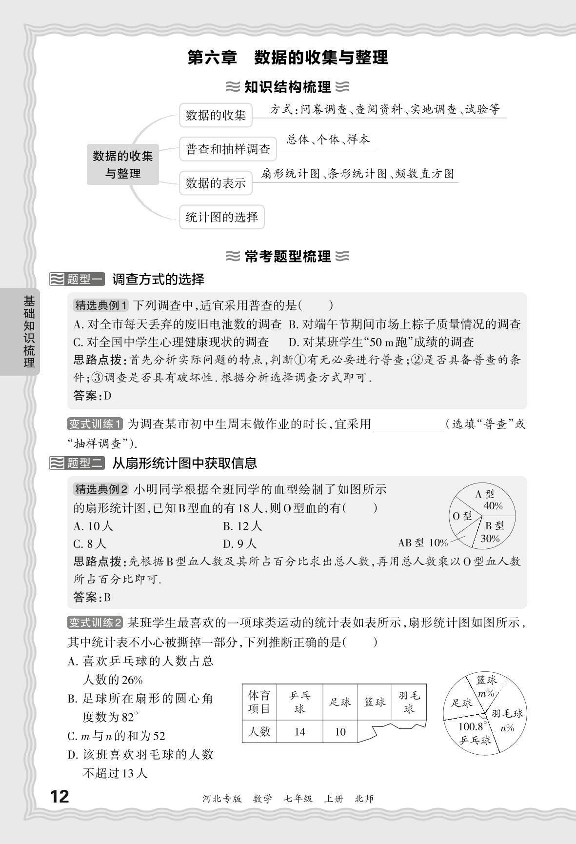 2023秋上册七年级数学北师版 期末过课本·基础知识梳理 第六章 数据的收集与整理