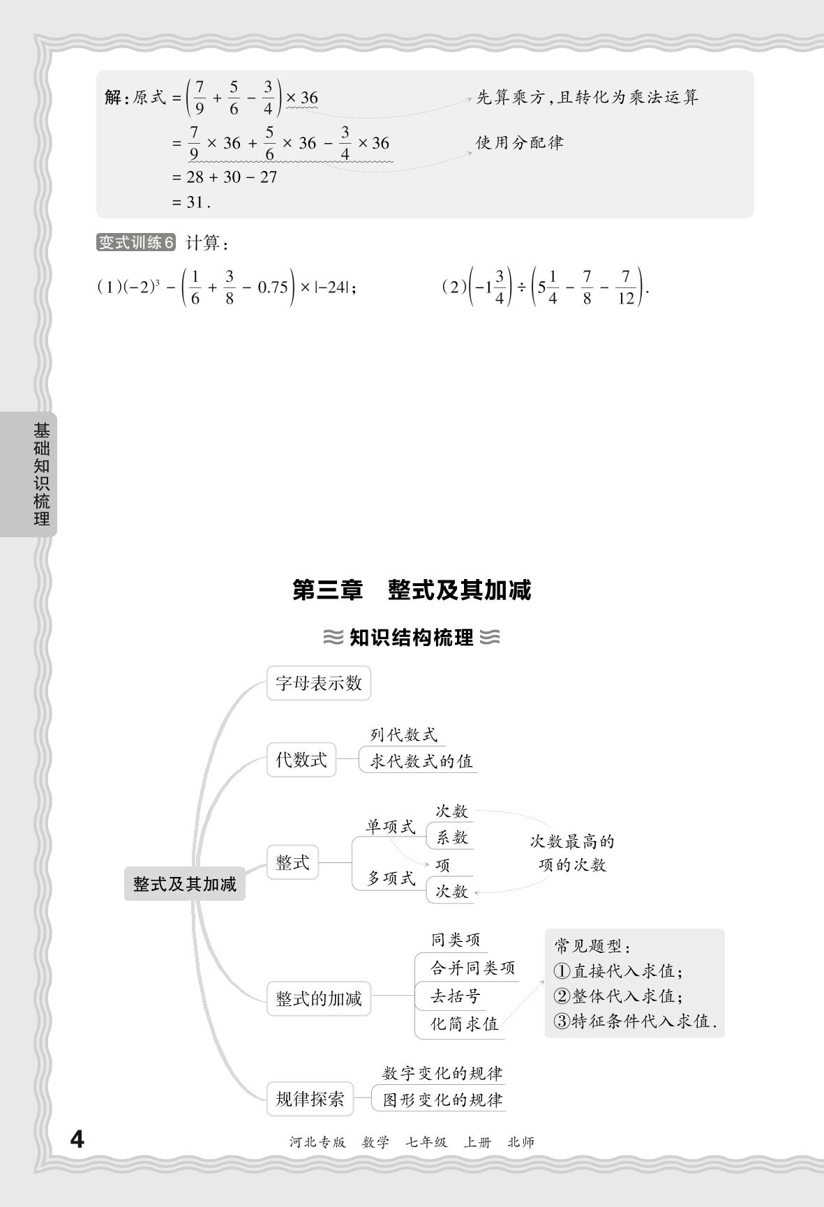 2023秋上册七年级数学北师版 期末过课本·基础知识梳理 第三章 整式及其加减