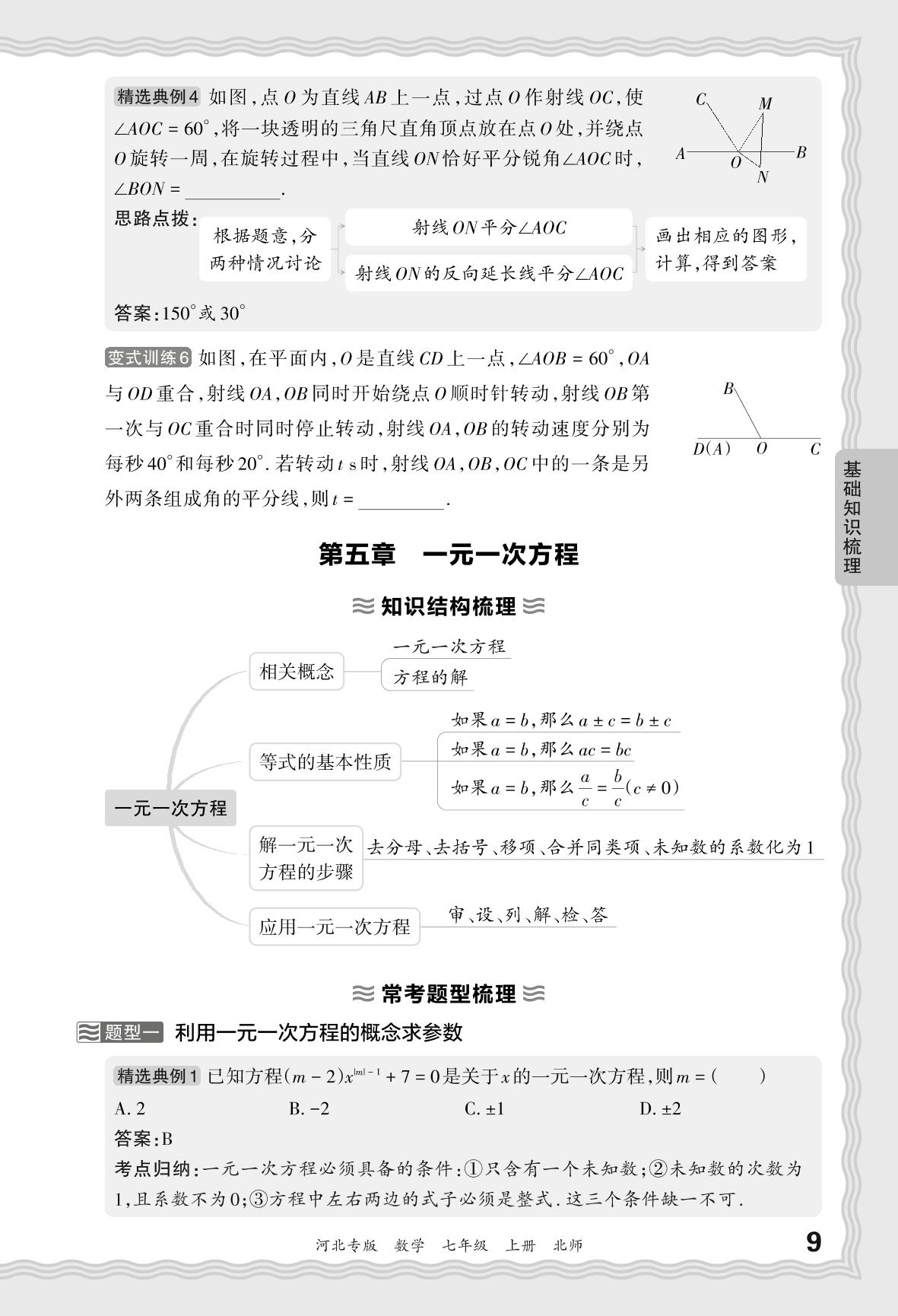 2023秋上册七年级数学北师版 期末过课本·基础知识梳理 第五章 一元一次方程