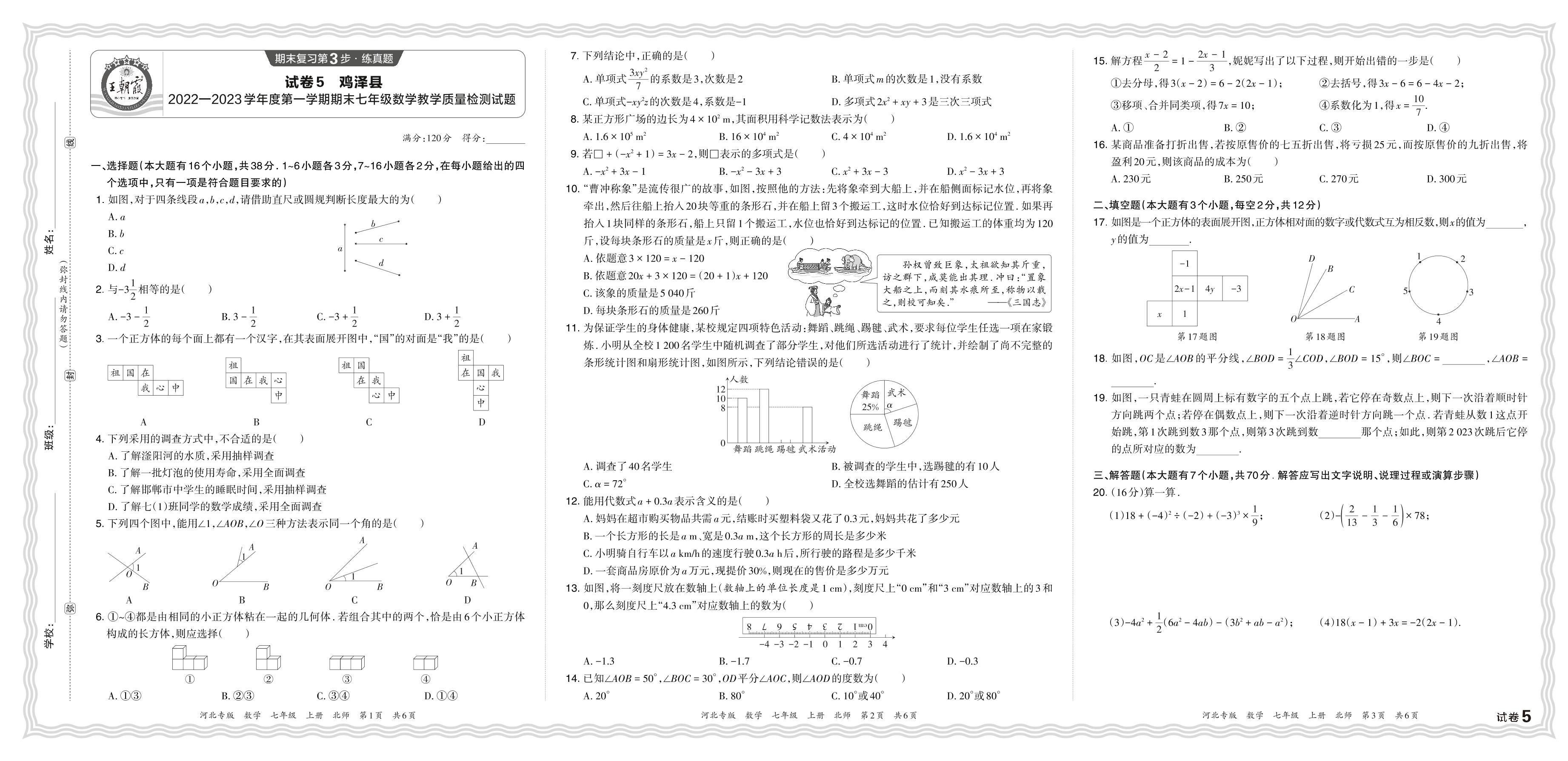 河北省邯郸市鸡泽县2022—2023学年度第一学期期未七年级数学教学质量检测试题(北师版)【5】