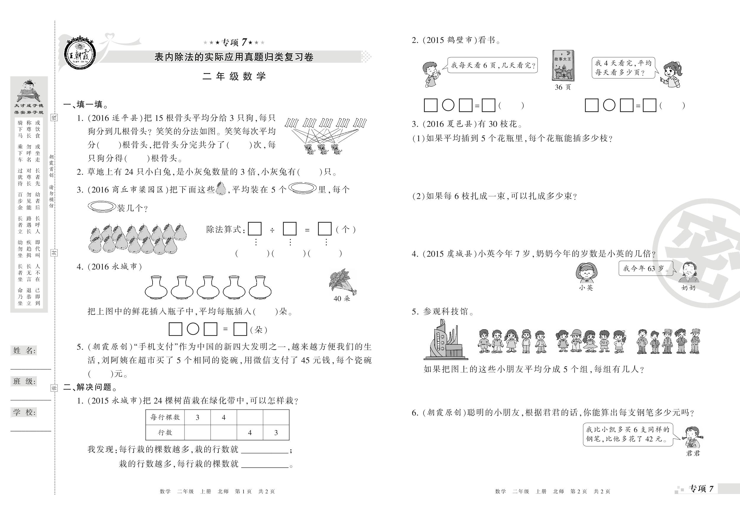 王朝霞期末专项卷——表内除法的实际应用、购物与测量真题归类复习卷二年级上册数学(北师版)_R210803103646【0】