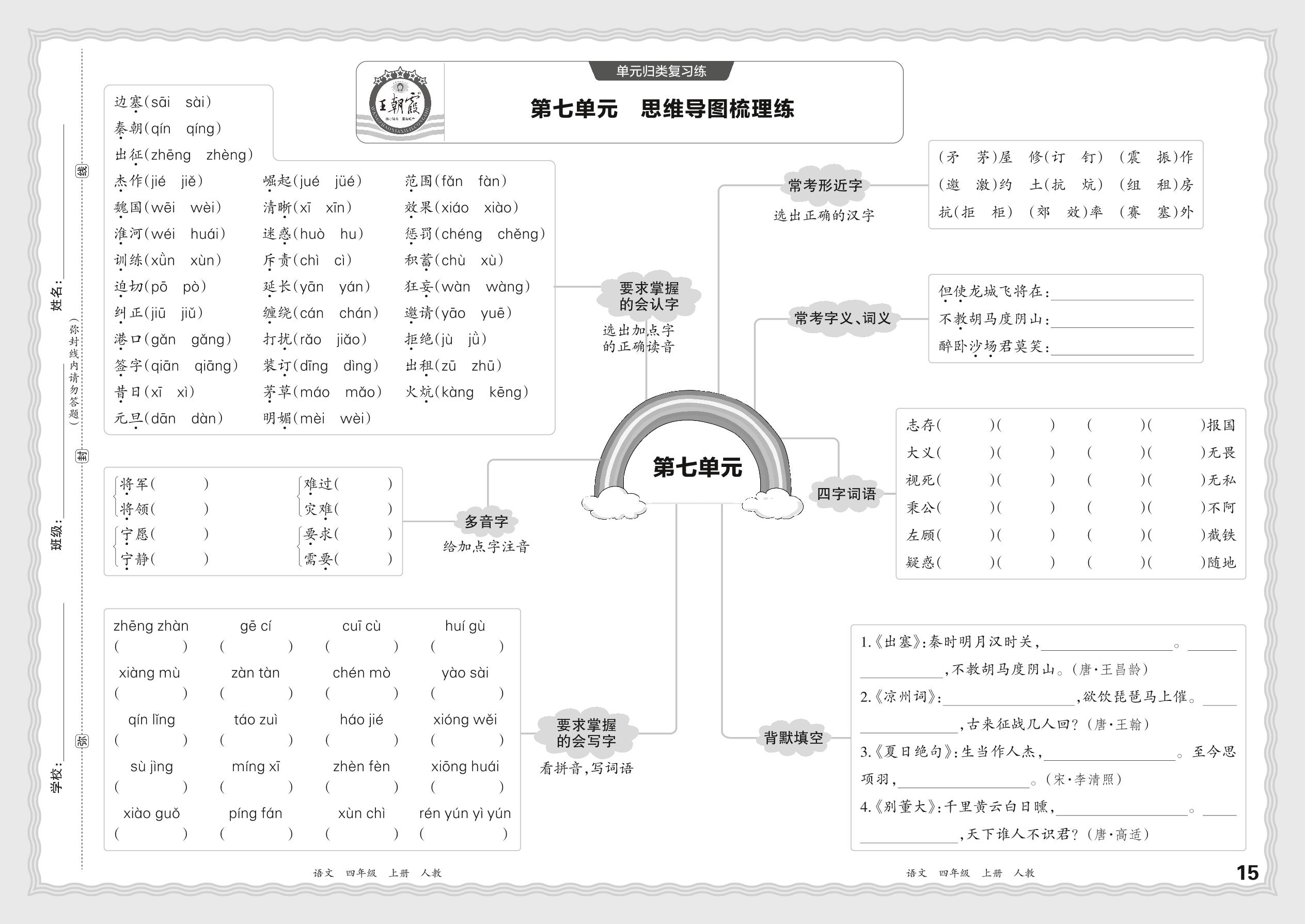2023秋上册四年级语文人教版 期末过课本·单元归类复习练——第七单元