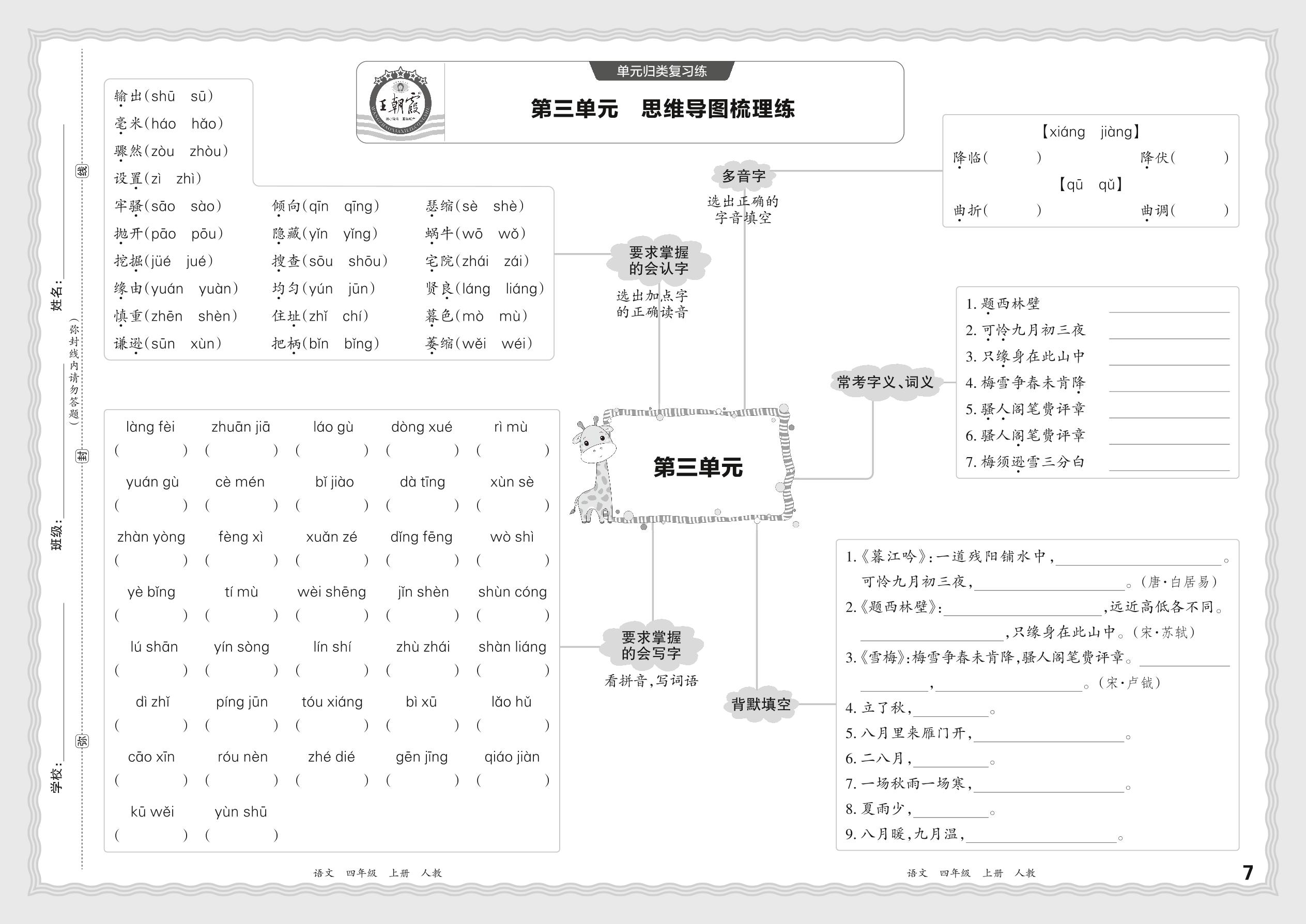 2023秋上册四年级语文人教版 期末过课本·单元归类复习练——第三单元