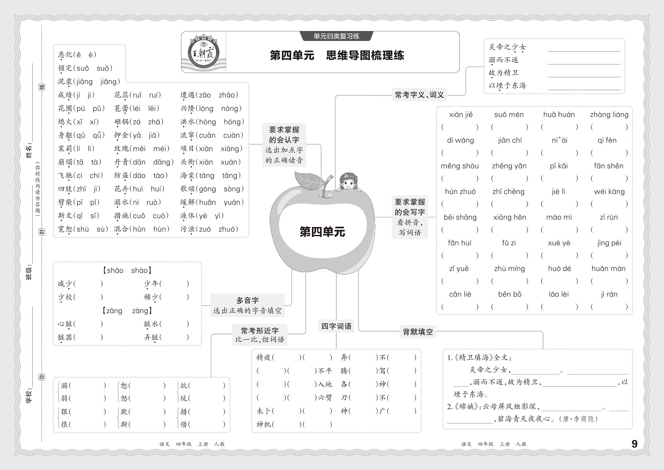 2023秋上册四年级语文人教版 期末过课本·单元归类复习练——第四单元