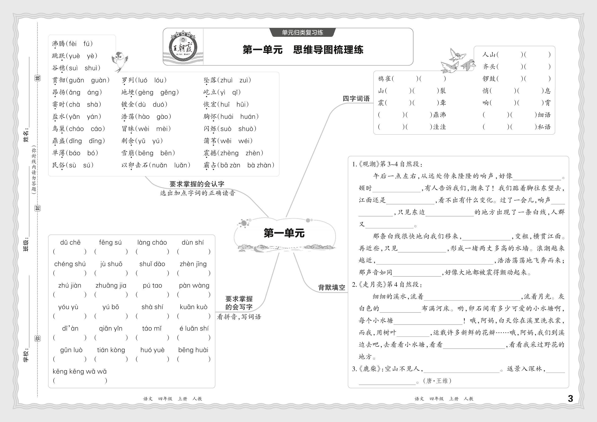 2023秋上册四年级语文人教版 期末过课本·单元归类复习练——第一单元