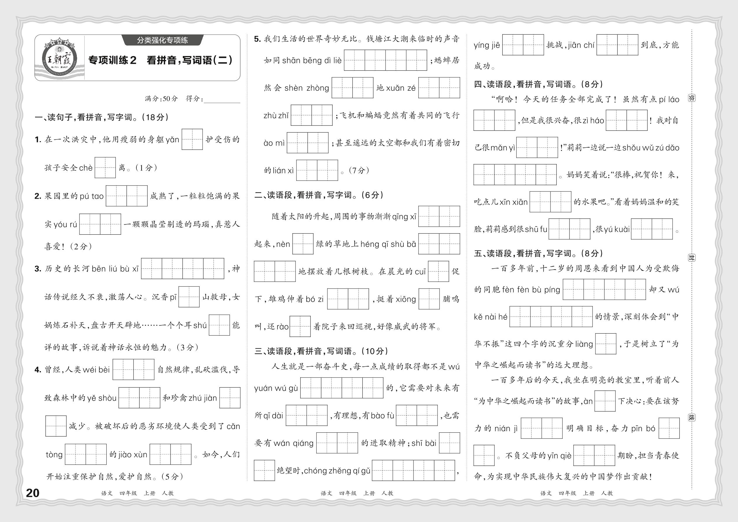 2023秋上册四年级语文人教版 期末专项·看拼音,写词语(二)【2】