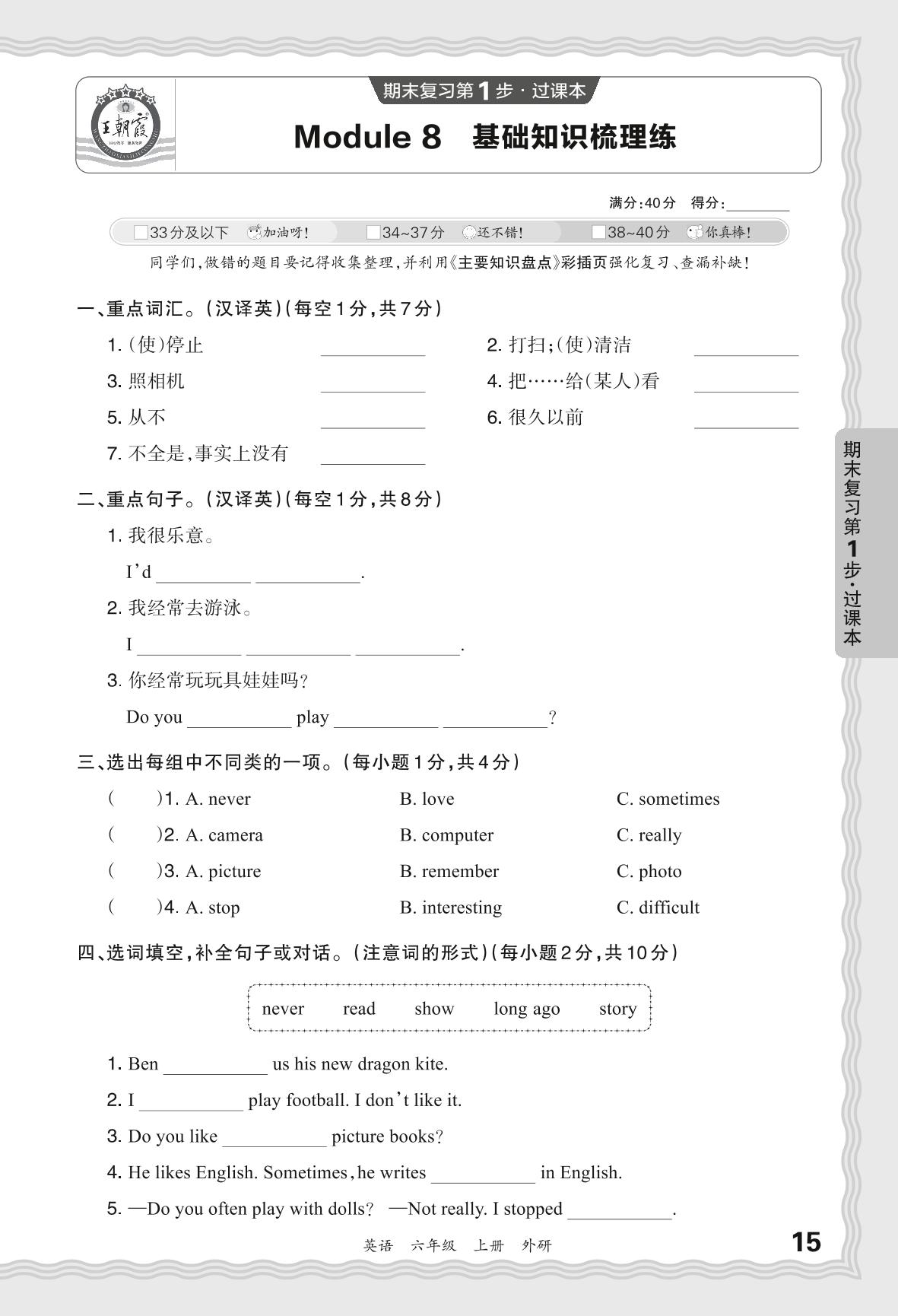 2023秋上册六年级英语外研版 期末过课本·Moudle 8 基础知识梳理练