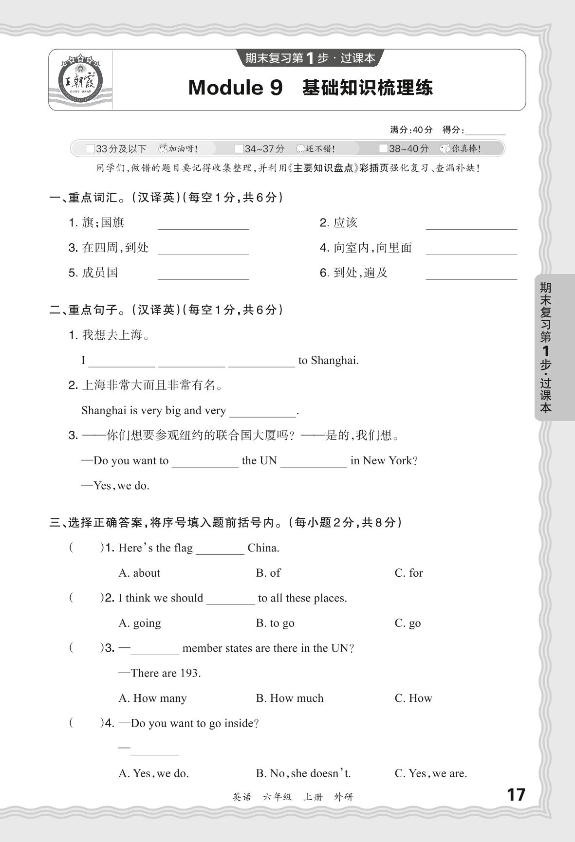 2023秋上册六年级英语外研版 期末过课本·Moudle 9 基础知识梳理练