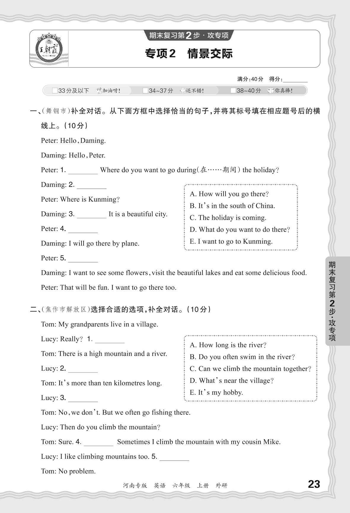 2023秋上册六年级英语外研版 期末专项卷·情景交际【2】