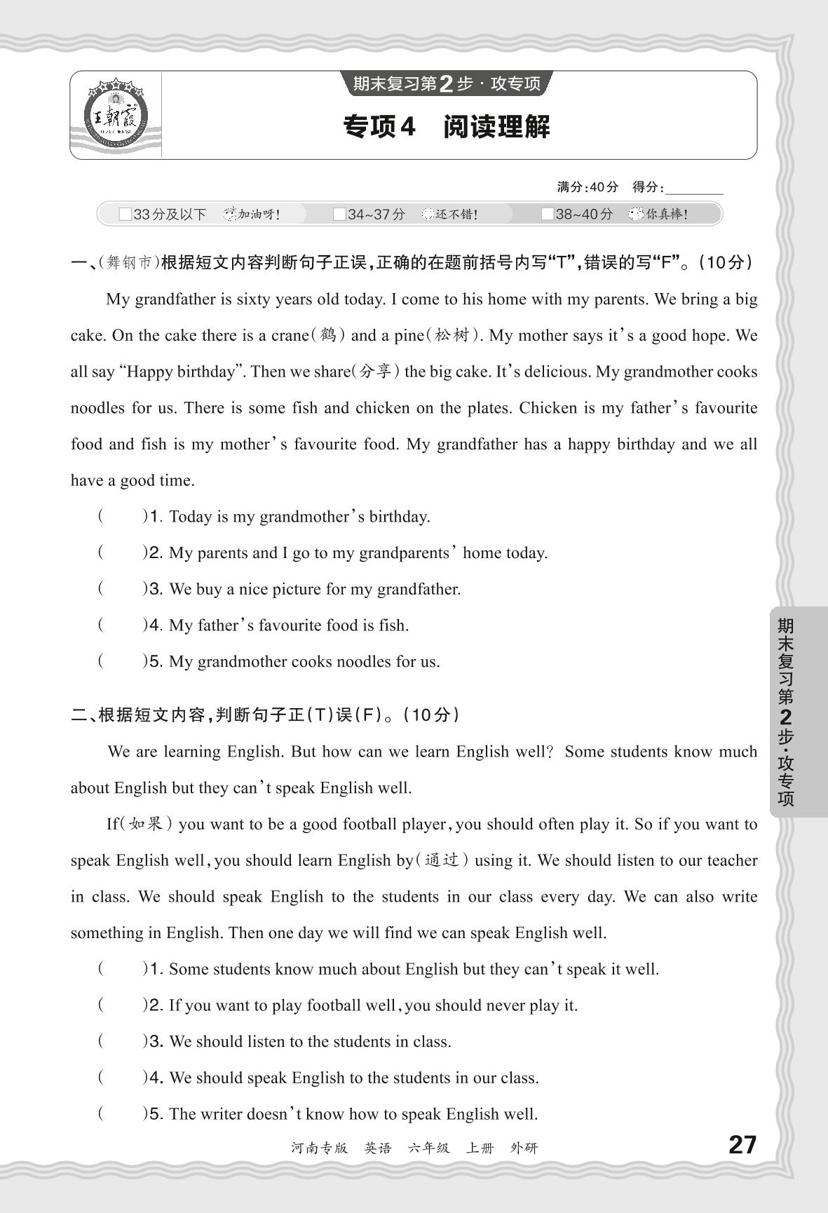 2023秋上册六年级英语外研版 期末专项卷·阅读理解【4】