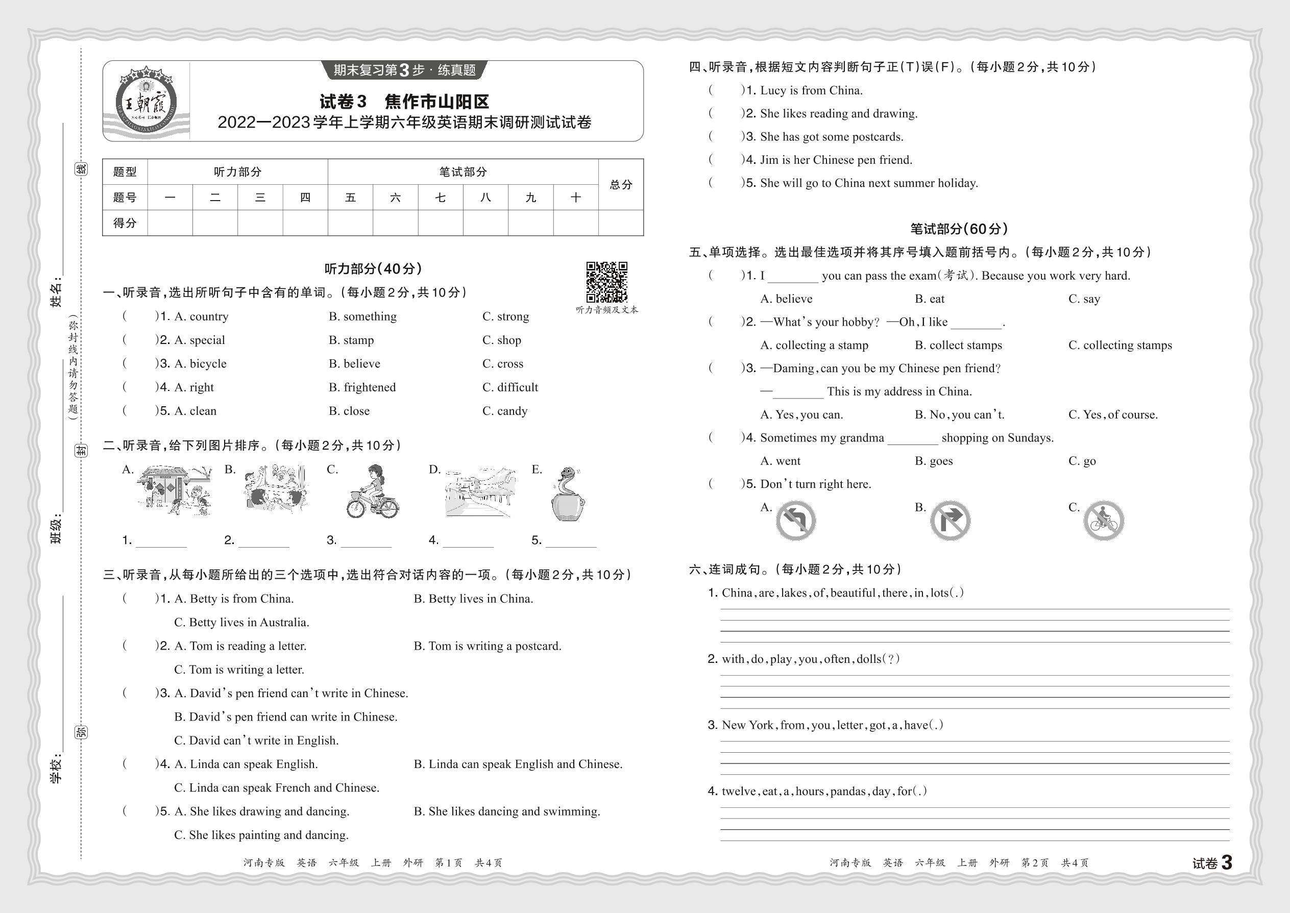 河南省焦作市山阳区2022—2023学年上学期六年级英语期末调研测试试卷(外研版)【3】