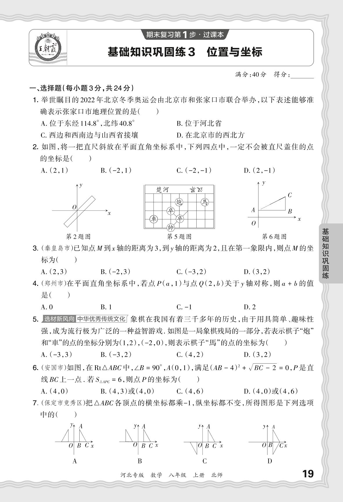 2023秋上册八年级数学北师版 期末过课本·基础知识巩固练 位置与坐标【3】