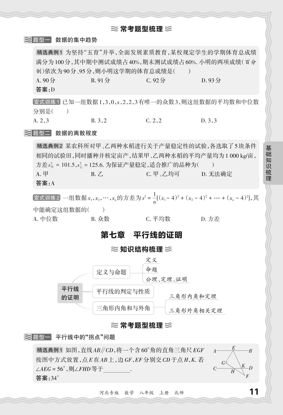 2023秋上册八年级数学北师版 期末过课本·基础知识梳理 第七章 平行线的证明