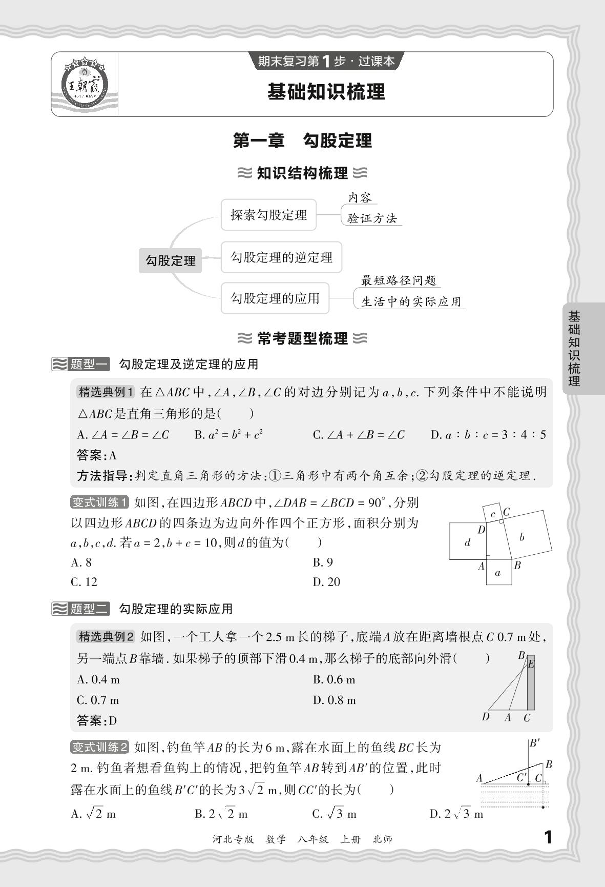 2023秋上册八年级数学北师版 期末过课本·基础知识梳理 第一章 勾股定理