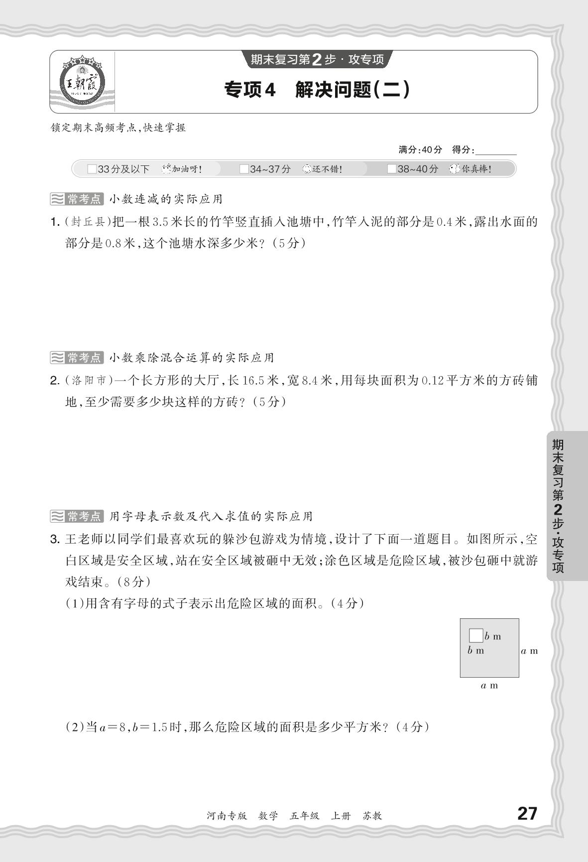 2023秋上册五年级数学苏教版 期末专项卷·解决问题(二)【4】