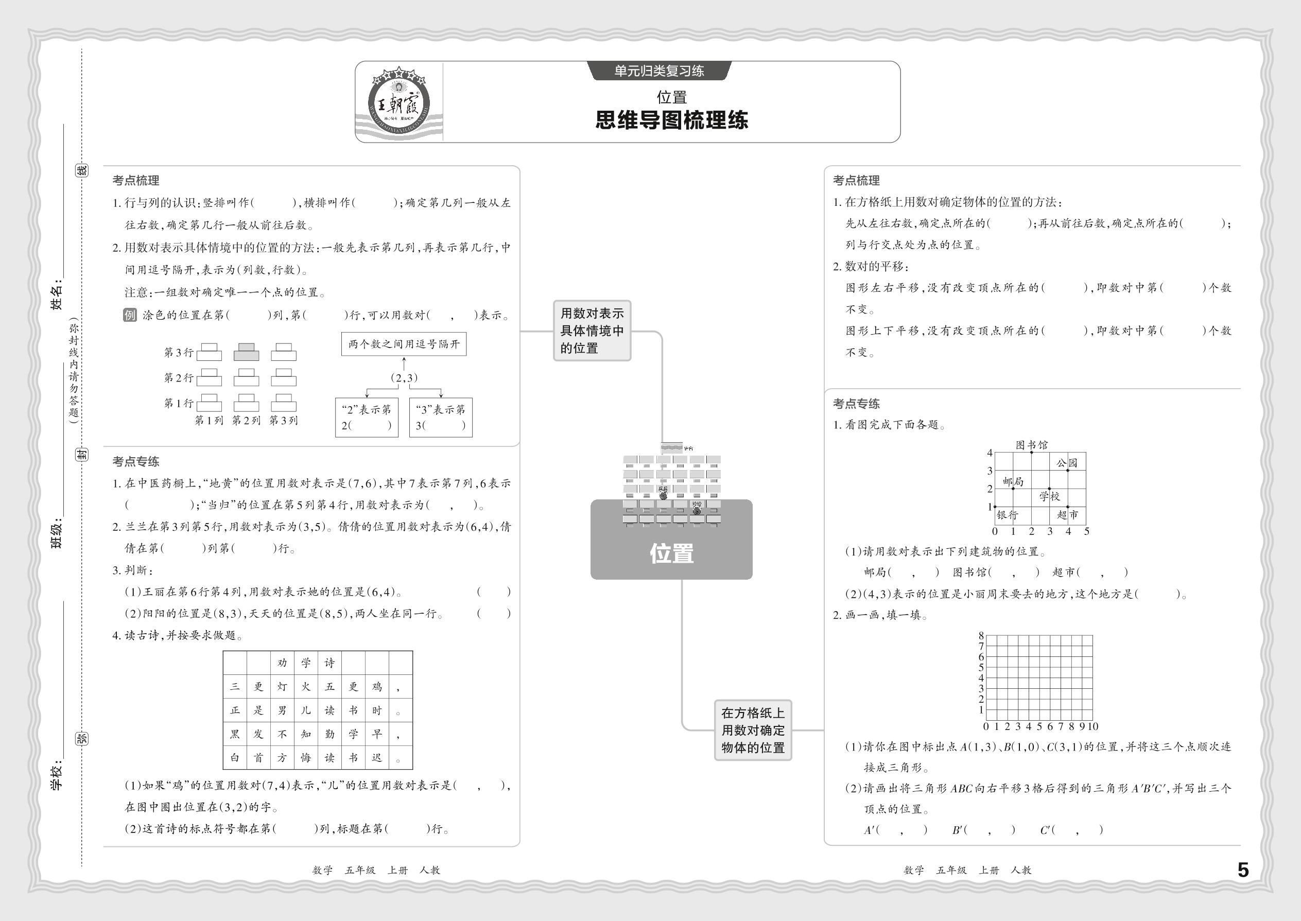 2023秋上册五年级数学人教版 期末过课本·单元归类复习练——位置【2】