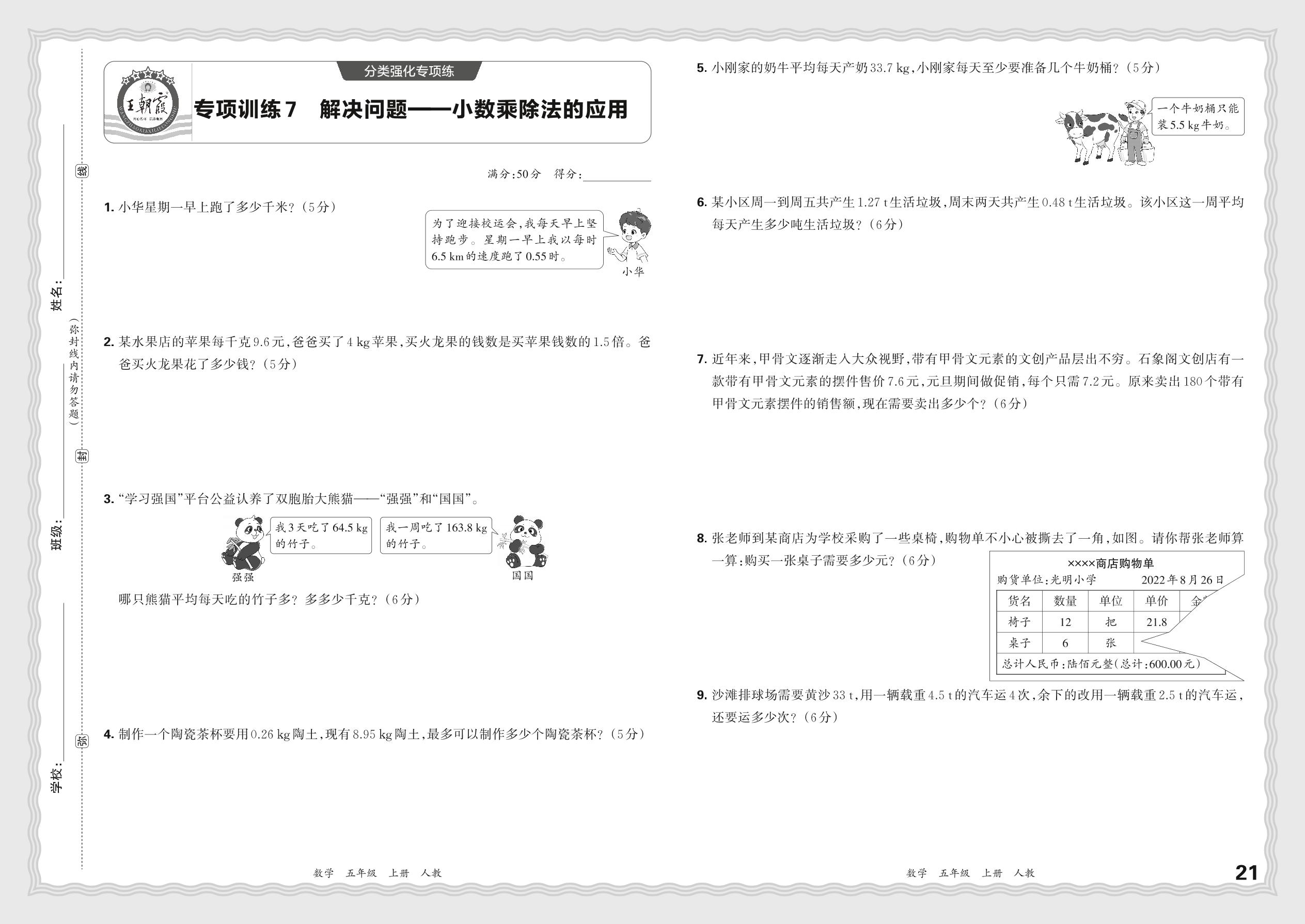 2023秋上册五年级数学人教版 期末专项·解决问题——小数乘除法的应用【7】